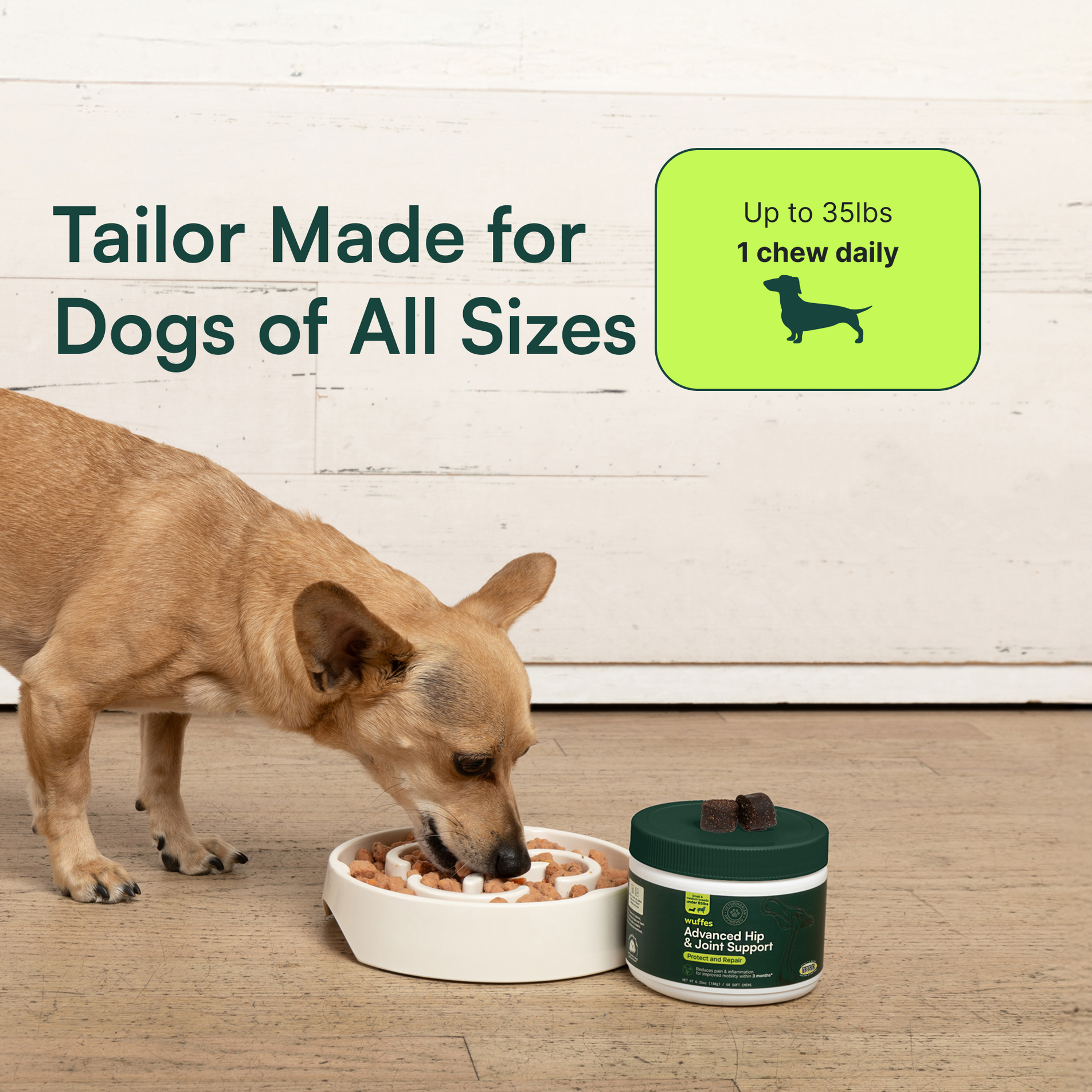 Ideal for daily maintenance, Advanced Hip & Joint Support can also be a great option for pups who may need more intensive joint support.