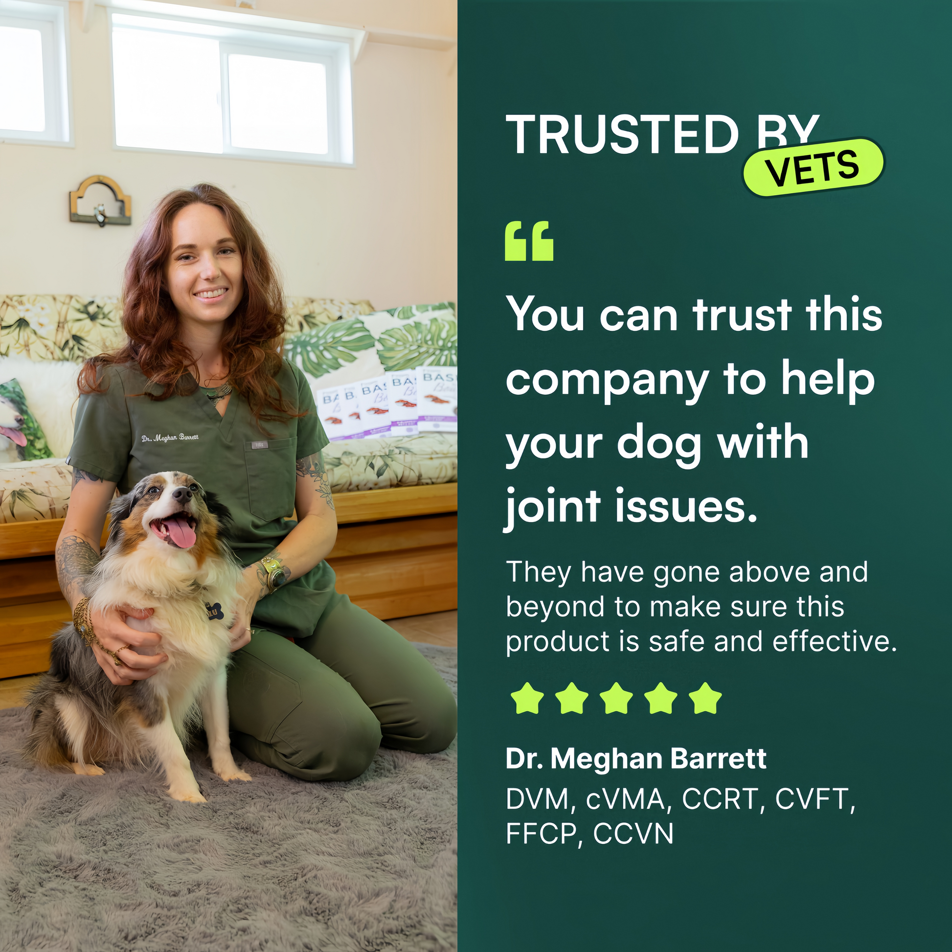 The Truth:Our joint supplements are an important part of a holistic approach to your dog’s well-being, but they're not a magic fix! Regular exercise and a balanced diet are key to maintaining joint health and overall vitality. Think of our supplements as the boost your dog’s joints need to stay happy and active.